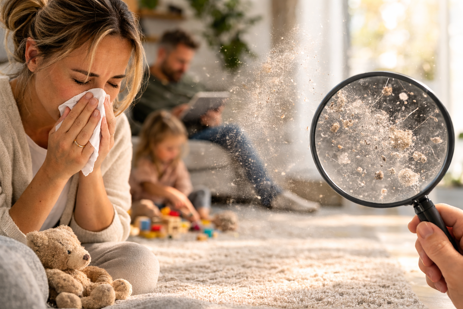 Auch bei uns zu Hause war das lange ein Thema. Mein Mann hatte starke Probleme mit Hausstaub und Allergiesymptomen. Niesen, gereizte Augen und eine ständig belastete Raumluft gehörten einfach zum Alltag.